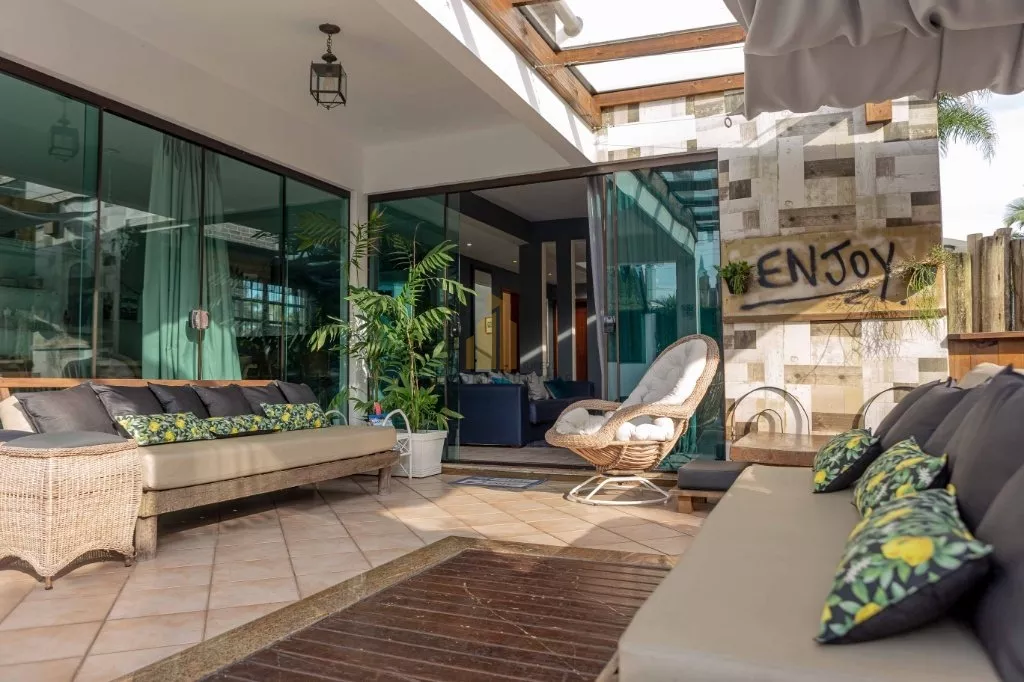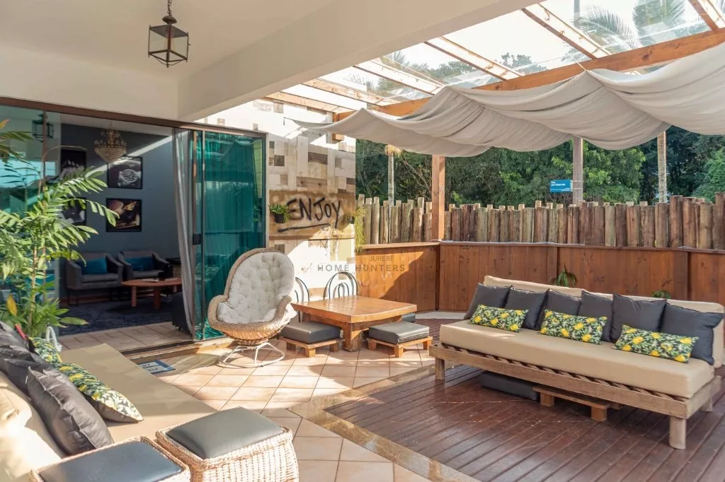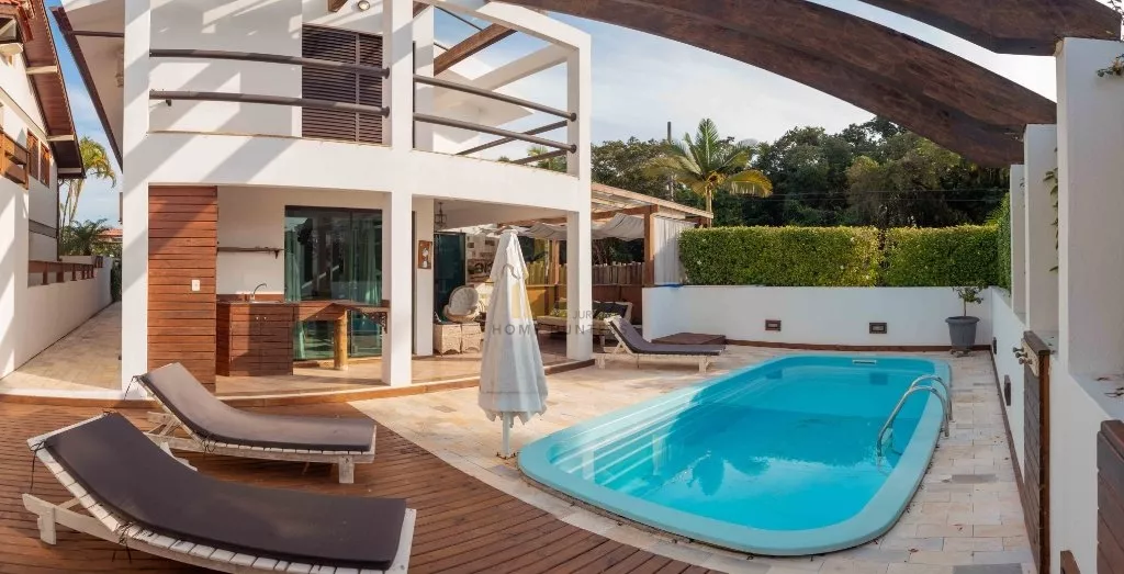 Belíssima casa localizada proximo ao open shopping em Jurerê Internacional. Com capacidade para até 10 pessoas, perfil família, é composta por 4 dormitórios, sendo 2 suítes, 2 garagens, 5 ar condicionado, 4 ventilador de teto, piscina, internet wifi, churrasqueira, closet, área de serviço, sacada, living, sala de estar e jantar. A vizinhança e a rua são tranquilas. A casa fica próxima a serviços, supermercados, restaurantes, lavandeira, bancos, serviço de táxi, atendimento médico, e locação de veículos, entre outros. Excelentes opções que contribuem para tornar as suas férias ainda mais confortáveis, de forma que você se divirta e aproveite o cenário paradisíaco sem qualquer preocupação.