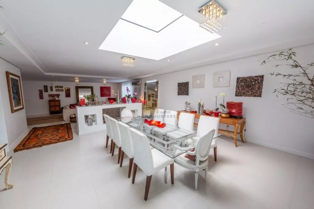 Linda mansão Localizada no bairro de Jurerê Internacional. São 7 dormitórios amplos, sendo 6 suítes e mais uma dependência de empregada, todos os ambientes climatizados, área de serviço, armários de cozinha, churrasqueira, internet wifi, lavabo, piscina com jacuzzi, sacada, sala de estar, sala de jantar, sala de TV e varanda. Residência com total infraestrutura de lazer e segurança.