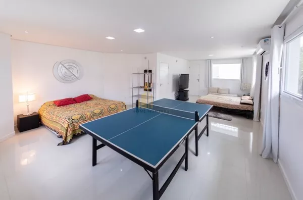 Quarto 7: 2 camas king + 3 camas de solteiro (bicamas) oferecendo um banheiro completo ao lado. Este é uma ambiente bem espaçoso. O sétimo quarto também usado como sala de jogos