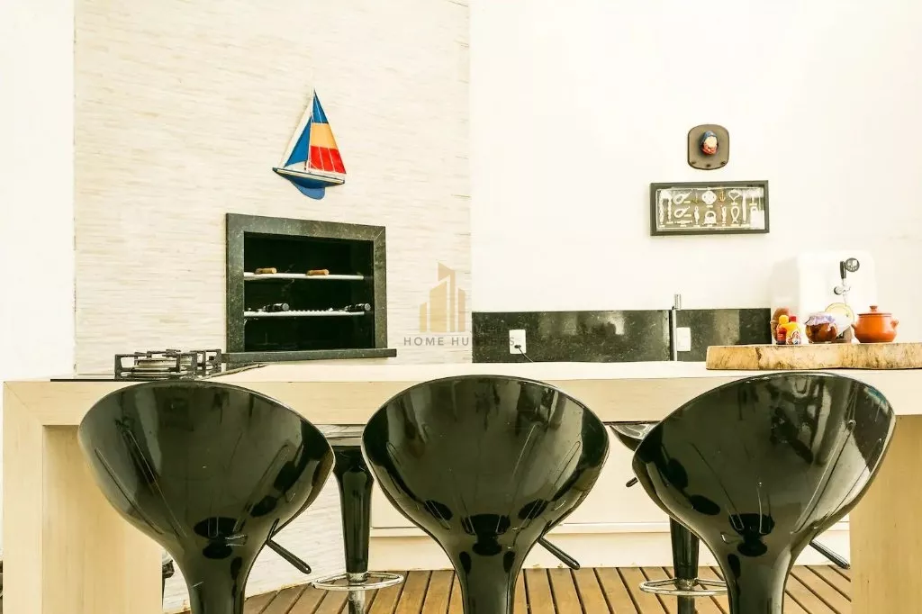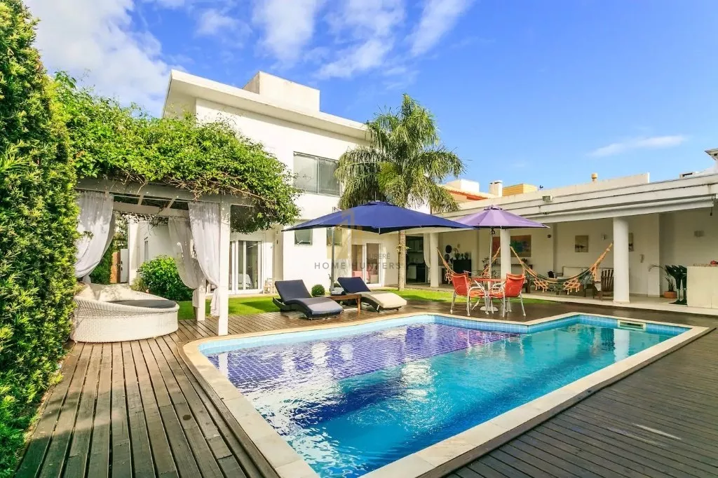 Linda casa com piscina, apenas a 3 quadras do mar, com 5 suítes, 6 banheiros e acomoda até 10 pessoas. A piscina tem dois níveis de profundidade e raia para natação, espaço gourmet, cervejeira, churrasqueira, banheira com cromoterapia e hidromassagem , net e wifi, sala equipada com home theater e telão.