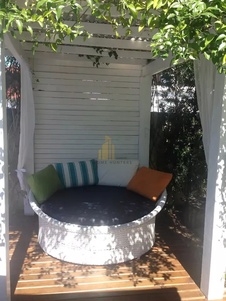 Alem dos jardins ha uma conexão com a alameda onde tem um pequeno campo de futebol, árvores frutíferas e uma horta com temperos variados para sua cozinha.