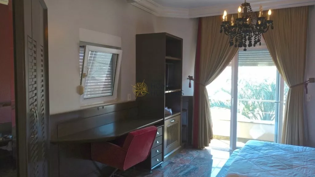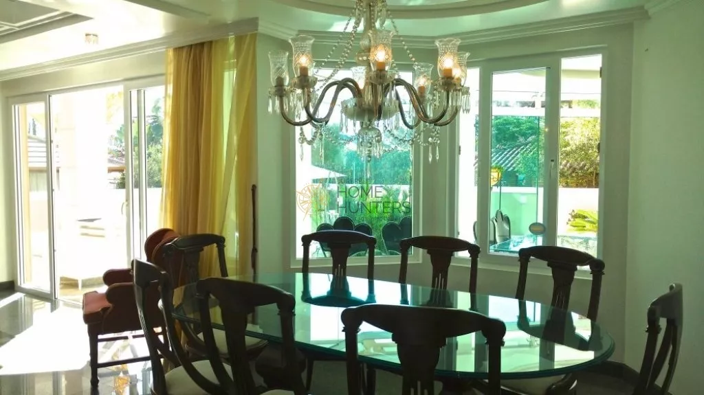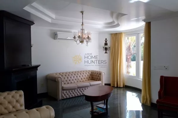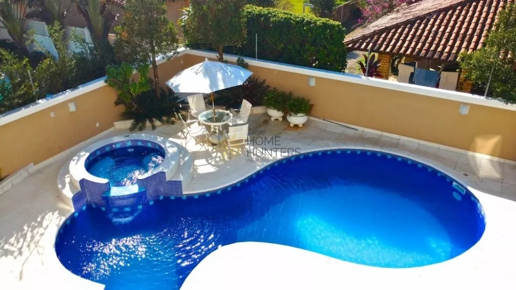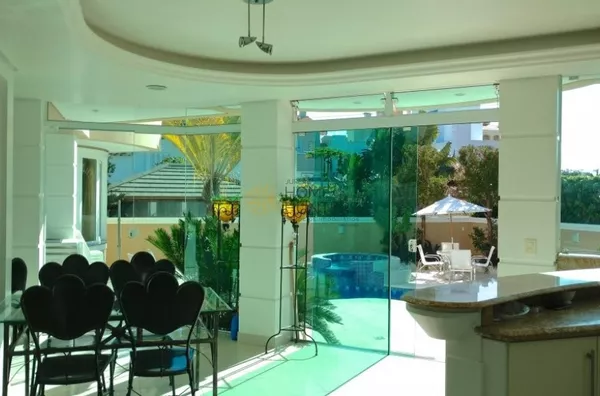 A casa possui 5 dormitórios, 5 suítes e mais uma dependência, acomoda 12 pessoas com muito conforto, 8 ar condicionado, todos os quartos com smart TV, 5 garagens, piscina, internet wifi, churrasqueira, closet, despensa, jardim, lareira, lavabo, living, sacada, sala de TV, sala de estar e de jantar.