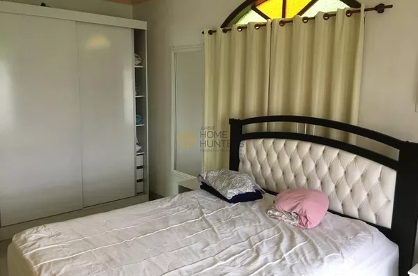 Excelente casa com acomodação para 6 pessoas, ideal para férias em família. Localizada em um dos bairros mais calmos de Florianópolis, com 3 quartos, sendo 1 suíte, 2 banheiros, todos os quartos com ventilador de teto, 1 sala de jantar, 1 sala de estar, 1 sala de tv, churrasqueira, cozinha com armário embutidos, pequena vista mar, lavanderia e 2 vagas de garagem.