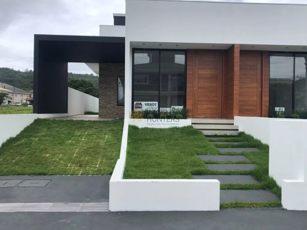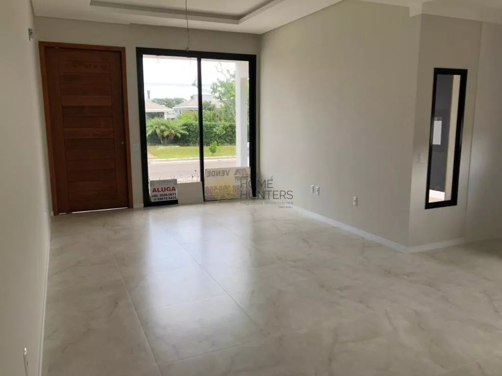 Excelente casa na Cachoeira do Bom Jesus. Casas térre geminada, com 2 demi-suites mais uma suíte master, sala com pé direito duplo, cozinha, área de serviço, garagem coberta para um carro, mais vaga externa e anexo com churrasqueira e lavabo no fundo terreno. Casas com 122 m², paredes calfinadas, piso em porcelanato 70x70, sanca de gesso na sala, molduras em todos os ambientes, persiana integrada nos dormitórios.