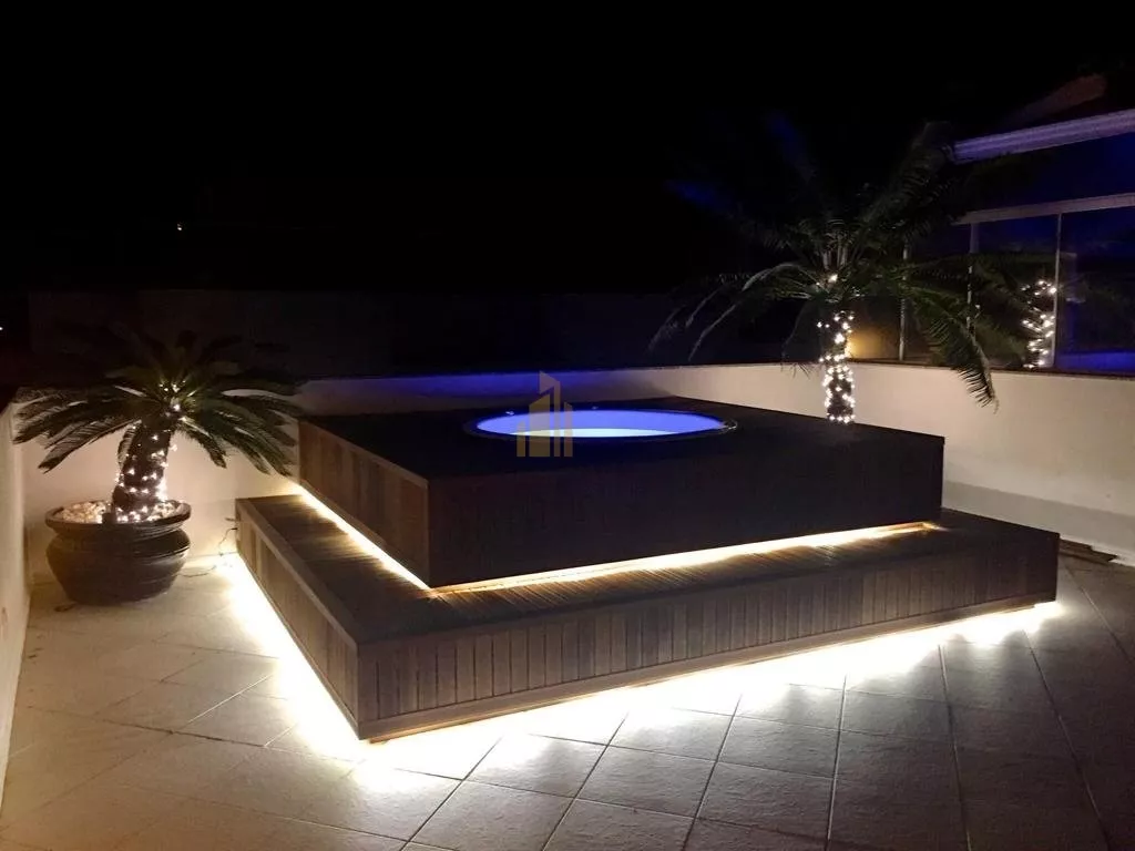 Cobertura com 3 quartos, sendo 2 suítes, piscina, churrasqueira, living, sala de estar e jantar, salão de festas, sacada, lavabo, armários embutidos, armários de cozinha e área de serviço e um excelente espaço privativo com jacuzzi.