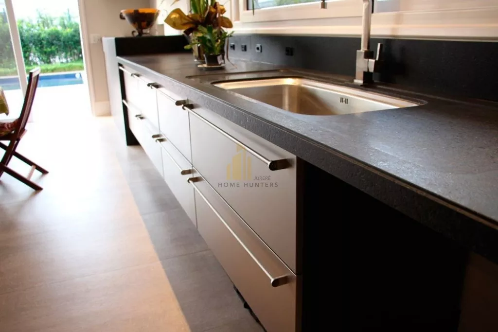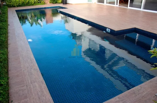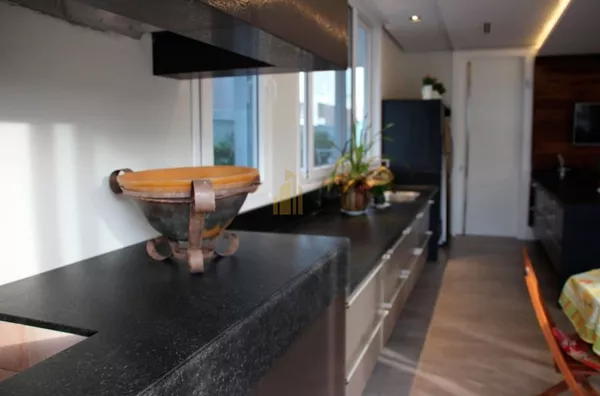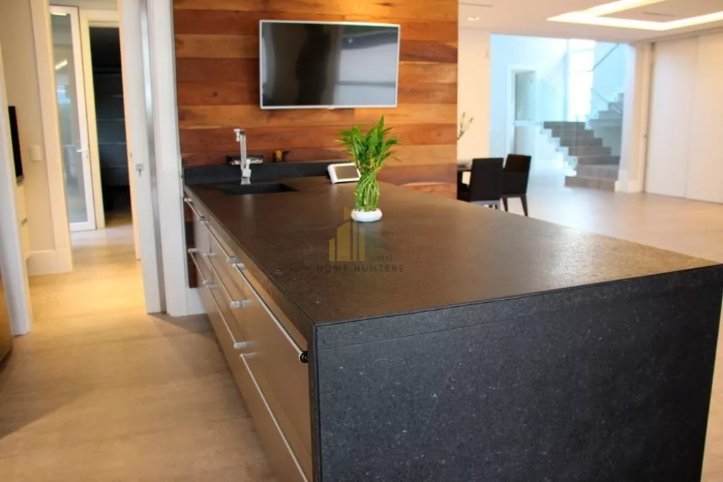 RESIDÊNCIA POSSUI: 5 SUÍTES, 4 VARANDAS, 3 VAGAS GARAGEM, 1 BANHEIRA DE HIDROMASSAGEM, 1 LAVABO, 1 LAREIRA, 1 WC PISCINA SISTEMA DE ALARME, 2 COZINHAS, AR CONDICIONADO, 1 ÁREA DE SERVIÇO 1 SALA DE ESTAR E JANTAR CONJUGADA, 1 SALA DE VIDEO, 2 CLOSETS, COZINHA / ÁREA DE SERVIÇO - COM ARMÁRIOS PLANEJADOS