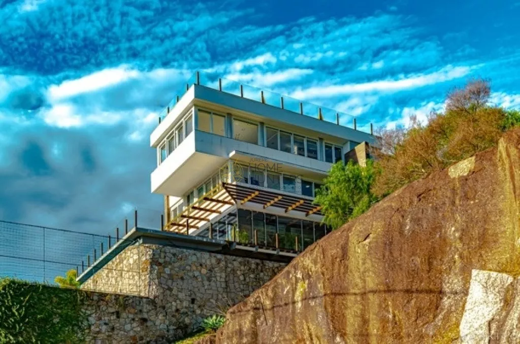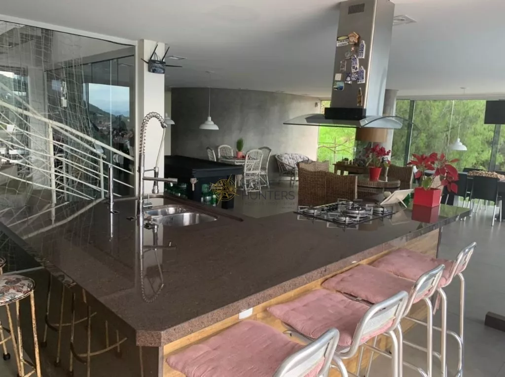 Espetacular Mansão em condomínio fechado localizada na maravilhosa ilha de Florianópolis SC no Bairro Santo Antônio de Lisboa, bairro nobre gastronômico, aos redores do condômino se encontra o supermercado Forte Atacadista, a Universidade Cesusc. Condomínio conta com portaria e segurança 24 horas, o terreno fica no extremo de uma linda serra cercado pela da mata atlântica. Mansão tem 5 andares, térreo; mini campo de futebol de grama esmeralda cercado por tela. 1° Piso; piscina sem cloro, hidromassagem para 7 pessoas, cozinha industrial e cozinha rustica com forno de pizza, fogão a lena, adega, lavabo, Salão de jogos, sala de música, sacada. 2° Piso; sala de game e tv acústica, suíte de empregados, lavanderia, 3° Piso 3 suítes piso aquecido, escritórios. 4° Piso; garagem pra 4 carros, box home, suíte e suíte Master com hidromassagem, cama king, amplo closet, pias dupla, piso aquecido, com vista mar de 90° graus, todas as janelas com persianas automáticas. 5° Piso; academia e terraço vista mar. Ambientes arejados e climatizados, janelas amplas todas com persianas automáticas, aspirador central, tratamento de água 100% independente, cisternas, total de 650 metros de área construída, ano de construção 2015, 9 banheiros, 7 suítes. Elevador panorâmico a combinar, Casa com escritura pública, aceita permuta por um ou mais imóvel.