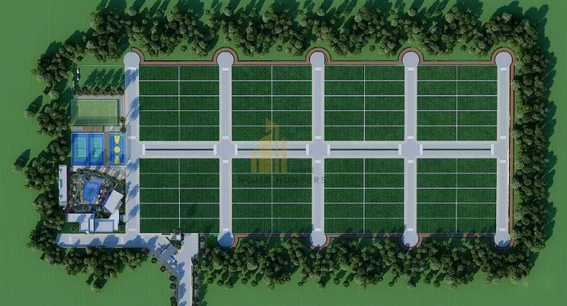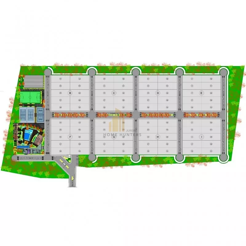 Os lotes possuem 600,00m2, cada um, e com uma área total em condomínio de 1.287,44m2.