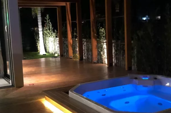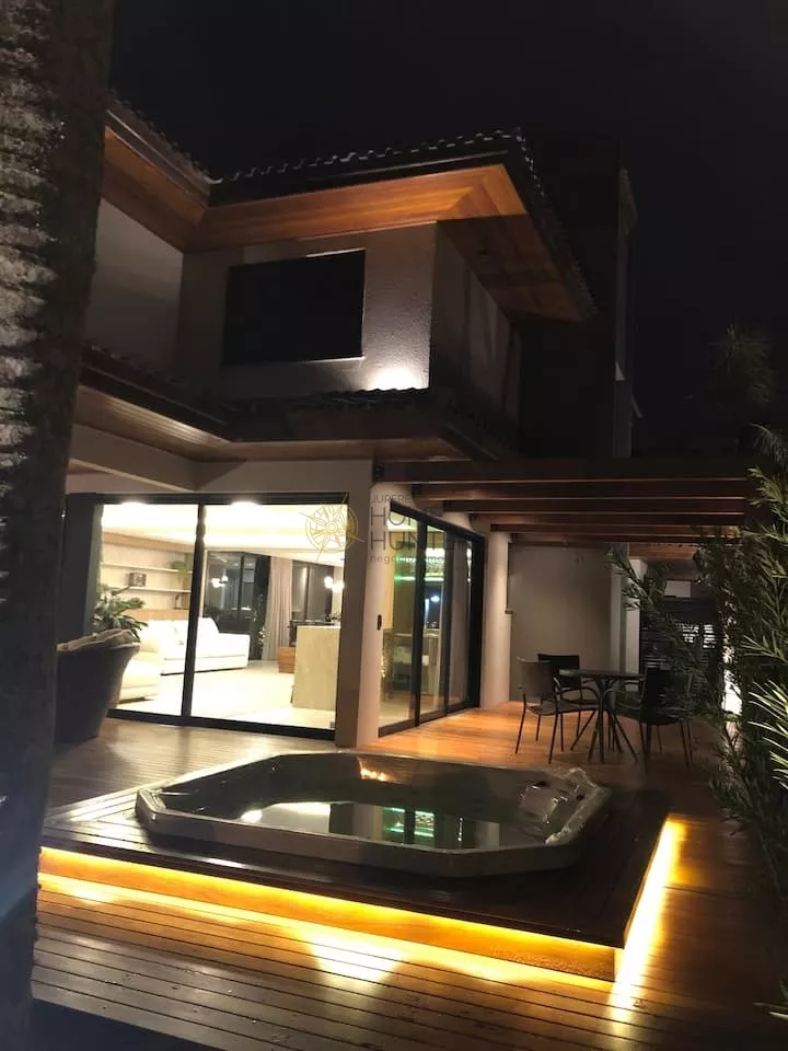 Linda casa, moderna e aconchegante, recém reformada. Cozinha equipada incluindo cervejeira grande e churrasqueira a carvão. Todos os quartos com ar condicionado, smartv e persianas motorizadas. Spa aquecido em um amplo deck em frente a casa. Localizada a 100m do Jurerê Open shopping e a 150m da praia.