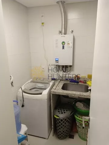 Área de serviço ampla ao fundo do apto na lateral direita, garantindo isolamento de ruído. Excelente sacada, com churrasqueira, pia e bancada e capacidade para reunir confortavelmente 6 pessoas sentadas. Lavabo na entrada do apto, com bancada em granito preto e espelho em toda a parede frontal