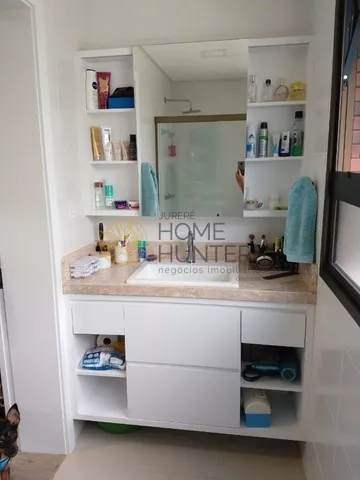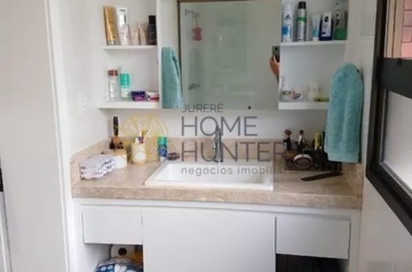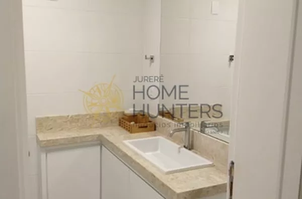 Com duas suítes amplas, com ótima iluminação natural (grandes janelas com persianas externas que garantem total escurecimento do ambiente) e com ótima ventilação. Lavabo, sala integrada com a cozinha, sacada com churrasqueira e área de serviço. Com a mudança do layout original, o apto teve seu espaço ainda mais otimizado, contando com mesa de jantar e sofá cama (tamanho cama box). O posicionamento do hack com a TV de frente para a área da cozinha proporciona ótima funcionalidade na arte da culinária e grande praticidade nas refeições rápidas.