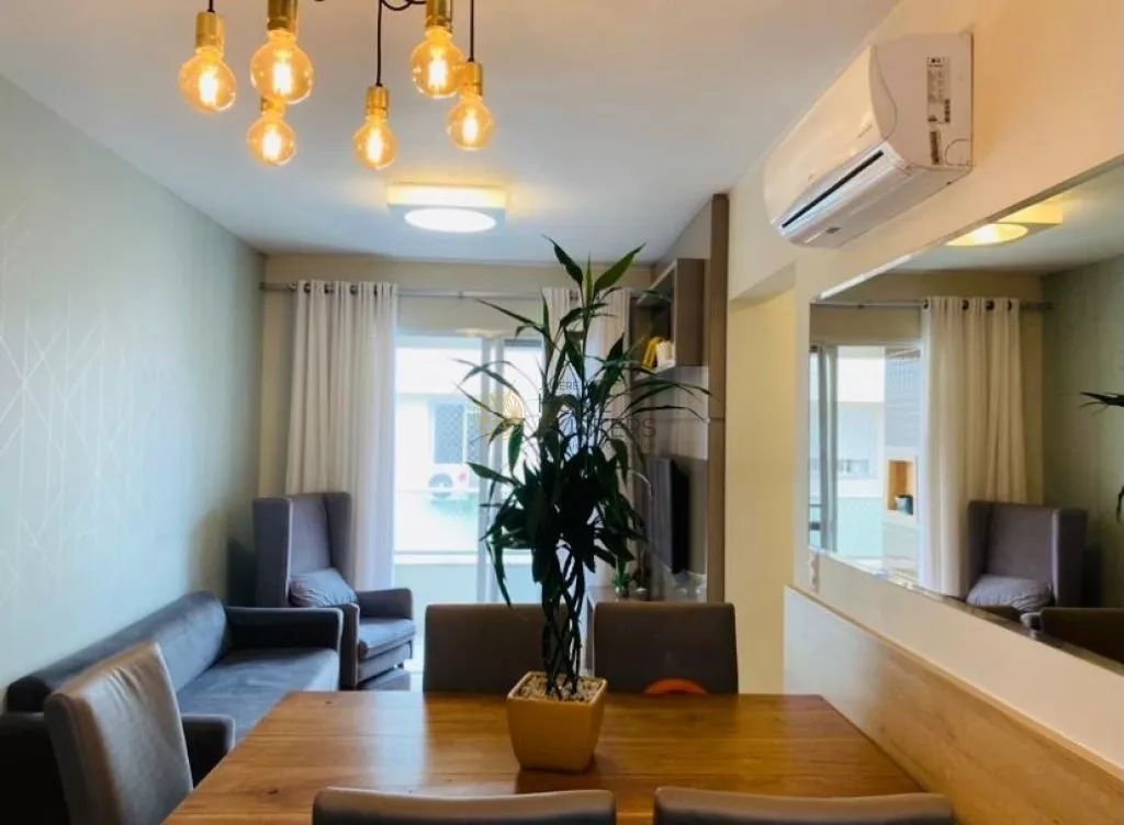 Excelente apartamento, varanda com churrasqueira, sala em 2 ambientes, banheiro social, 2 quartos sendo 1 suíte, móveis planejados de alto padrão, piso vinílico, splits nos dormitórios e na sala. Um vaga, lazer com piscina, brinquedoteca, salão de festas e piscina. Apto lindo, todo decorado, 800 metros do mar.